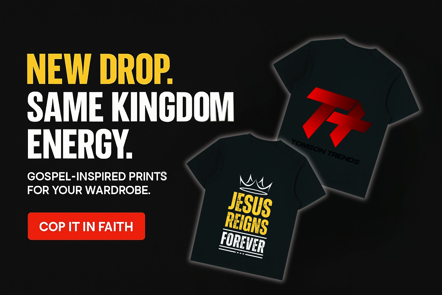 At TomsonTrends, every design is more than just fashion — it’s a declaration, a reminder, and a tool for evangelism. Whether you’re out with friends, at church, or just going about your day, you’re carrying a message that points hearts back to Christ.